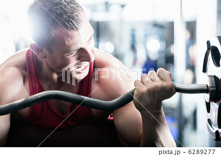 Man at weights training in gym