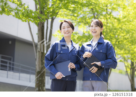 ビジネス 作業服を着ている女性