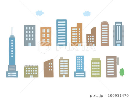 いろんなビルの手描きイラストセット(カラー/輪郭線なし)