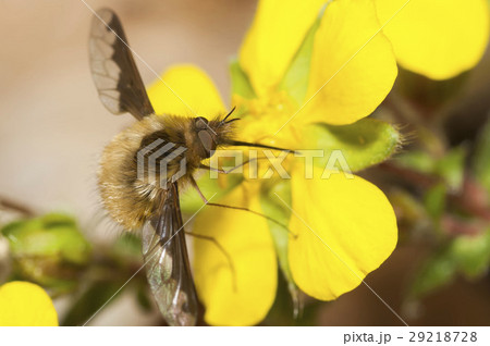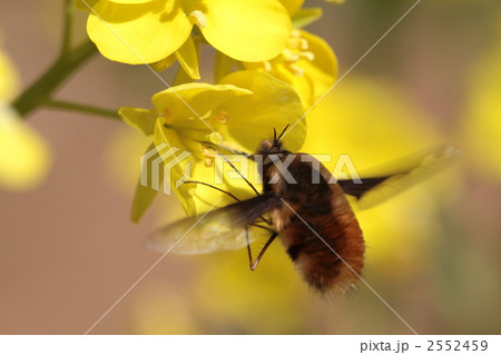 菜の花で吸蜜する春の訪れを告げるビロードツリアブ