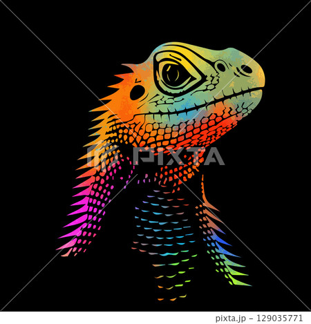 colored Lizard head on black background. hand drawing. Not AI, Vector illustration