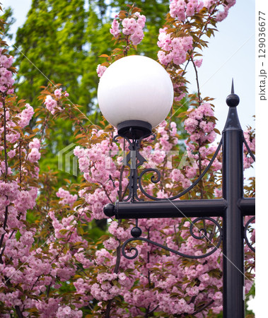 Blooming Cherry Blossoms Around Ornamental Street Lamp