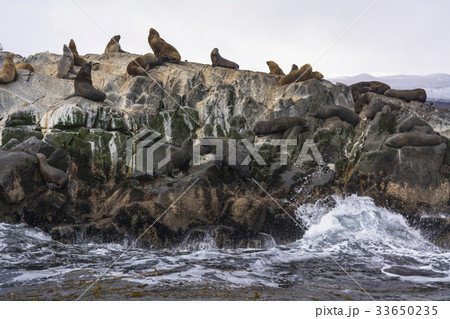 アルゼンチン ウシュアイア ビーグル水道 オタリアのコロニー