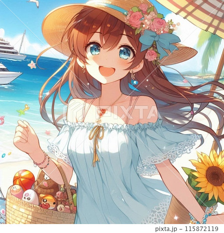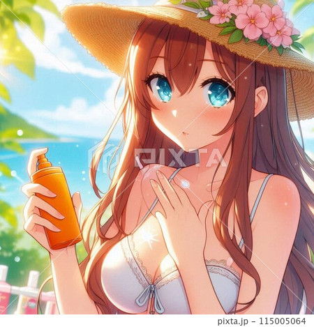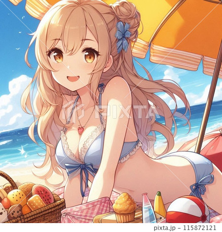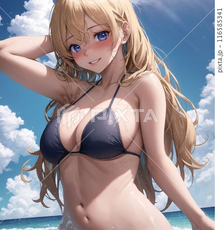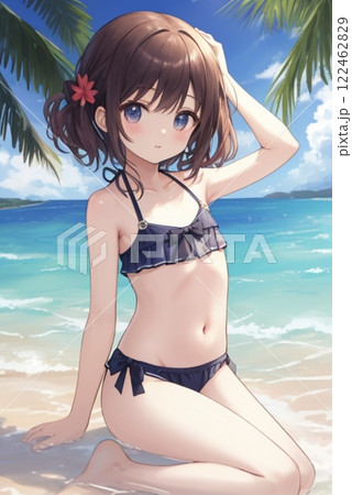 ビキニを着用した 日本の可愛い女性 アニメ調