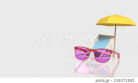 Summer Beach Vacation Accessories With Sunglasses And Umbrella 3d render.