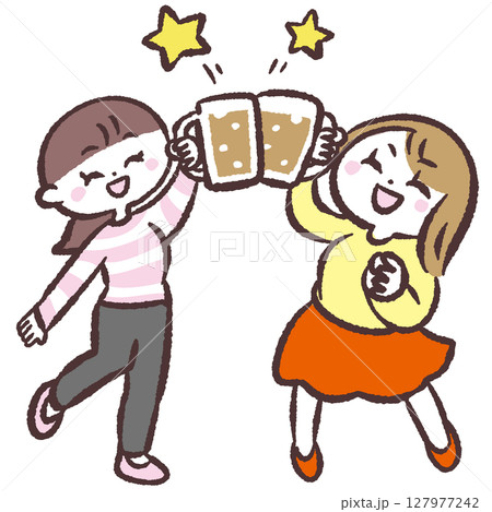 乾杯する二人の女性のイラスト
