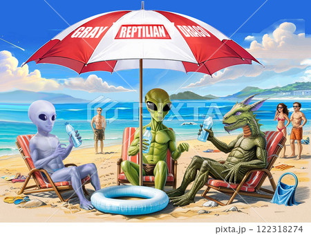 海水浴で水分補給する宇宙人 グレイ レプ ドラコ