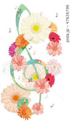 ベクター イラスト デザイン 音楽 音符 花 五線譜 飾り フレーム A3