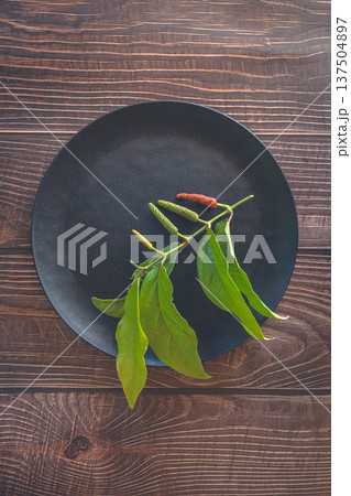 ヒハツと漆の皿