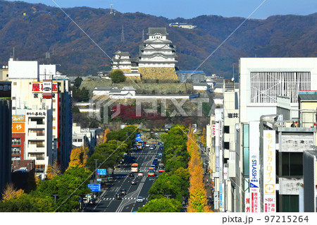 「世界文化遺産」「国宝」姫路城と大手前通り(JR姫路駅、ピオレ姫路展望フロアより/姫路城十景