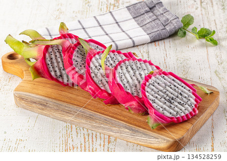 Ripe juicy dragon fruit Pitahaya slices