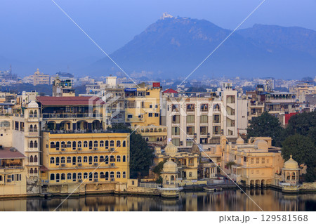 インドのウダイプル ピチョーラー湖岸に建つホテルや住居 美しい外観のシティ―パレス