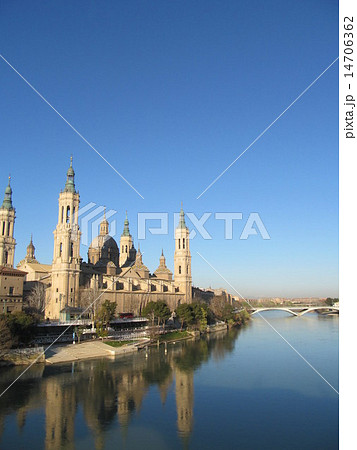 スペイン•サラゴサ、朝日に照らされるピラール聖母教会