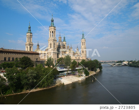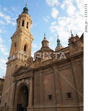 スペイン サラゴサ ピラール広場噴水と大聖堂