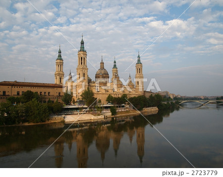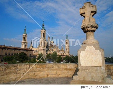 スペイン サラゴサ ピラール広場噴水と聖母教会