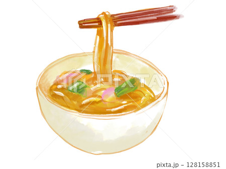 熱々で美味しそうなカレーうどんの手描き水彩イラスト