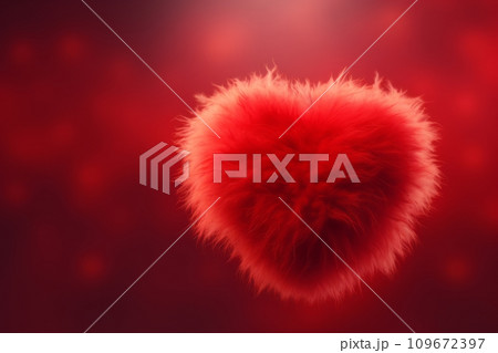 Blurred Romantic interior for Valentine's day with bed. Two red hearts on white.