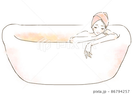 お風呂でリラックスする女性のイラスト 水彩風 バスルーム