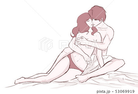 Romantic couple sleeping together in bed under blanket, top view vector illustration of man and woman resting in bedroom at night, dreaming in various positions