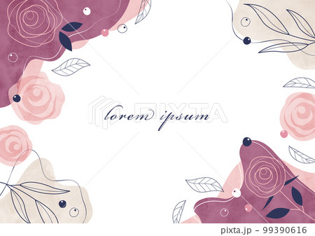 バラの花の背景フレーム ナチュラルな植物線画イラスト(パープル)