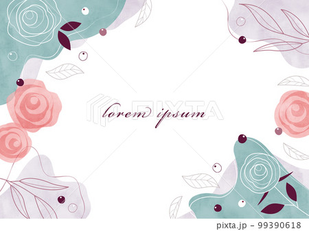 バラの花の背景フレーム ナチュラルな植物線画イラスト(ピンク)