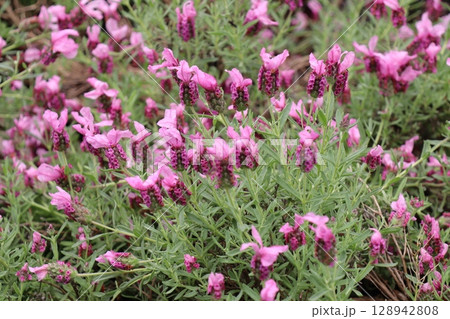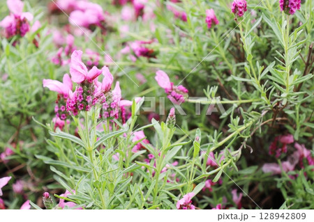 日本の春の公園に咲くピンク色のフレンチラベンダー(ピンクロリポップ)の花