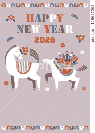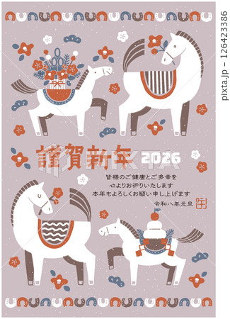 2026年 午年年賀状イラスト(馬の親子と馬の足跡)