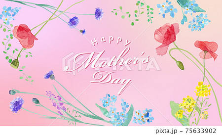 母の日のバナー。春の野原のお花のフレームデザイン。水彩イラストのトレースベクター。。