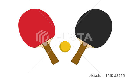 部活やクラブで楽しむ卓球のラケットとピンポン球のイラスト