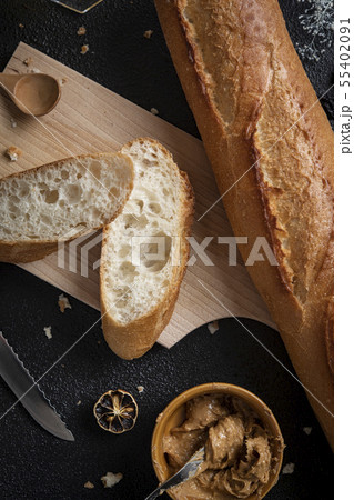 フランスパンとピーナツバター