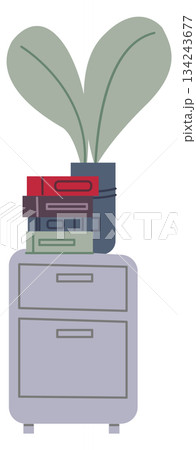 Home drawer side table with books and houseplant decoration