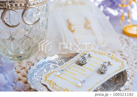 三日月のピアスとイヤリング アクセサリーの贈り物イメージ