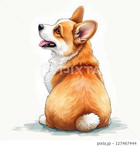後ろ姿が愛らしいコーギーのイラスト(AI生成)
