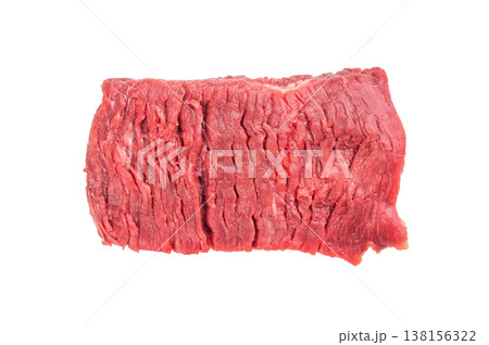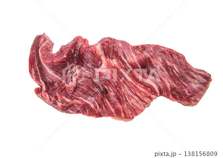 Raw beef meat cut with visible fibers and marbling isolated on white background, versatile protein ingredient for cooking grilling barbecue or fajita dishes