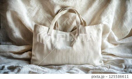 Eco-friendly minimalist bag crafted from recycled materials on textured fabric background. concept of sustainable fashion, zero waste lifestyle, environmental consciousness, eco style