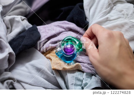 Using Laundry Detergent Pods While Doing Laundry in the Washing Machine with Clothes