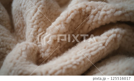 Fuzzy white blanket with a pattern. The blanket is made of wool