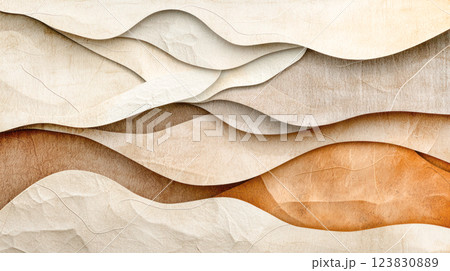 Abstract layered background with textured, wavy paper in warm earthy tones, creating a natural, organic composition with depth and soft flowing curves.