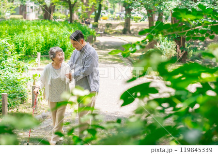 シニア女性 ミドル男性 親子 歩く