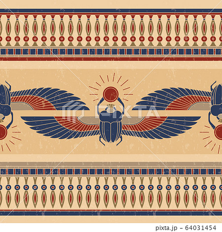 Symbols of ancient Egypt in the form of a rogue horizontal pattern with an illustration of a scarab