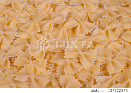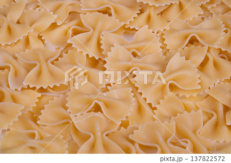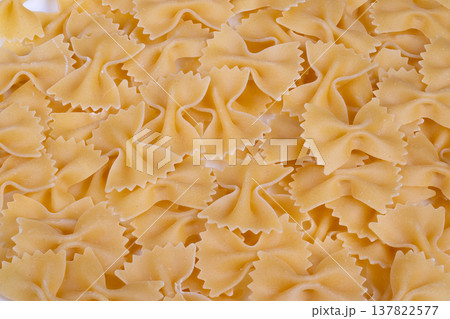 Stock farfalle bowshaped pasta pattern, highresolution dry pasta arrangement for background or culinary design mockups, warm beige tones, shallow focus