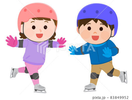 スケート教室で楽しく滑る男の子と女の子 イラスト
