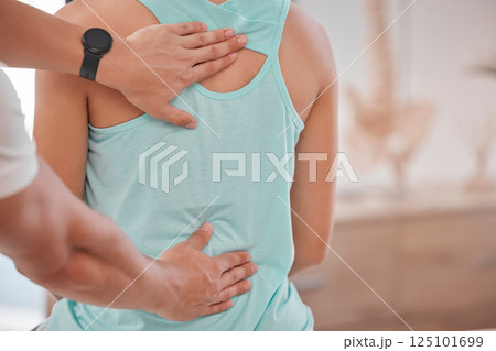 Chiropractor, spine massage and physiotherapy for back pain wellness spa treatment, physical therapy and spinal injury. Physiotherapist office, professional medical osteopath and woman with scoliosis