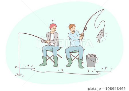 illustration of a fisherman who caught a fish