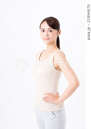 女性 スポーツ トレーニング ポートレート 笑顔 カメラ目線