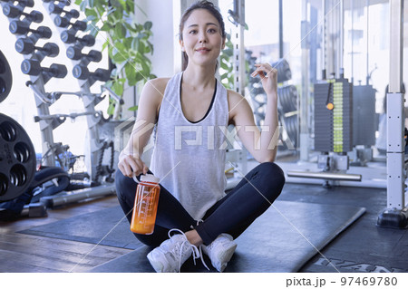 女性 スポーツ トレーニング ポートレート 笑顔 カメラ目線