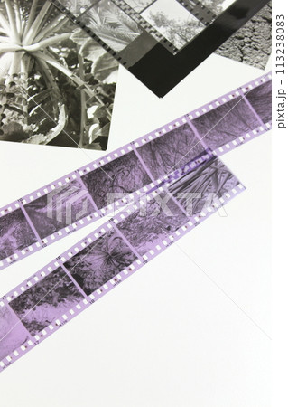 写真のネガフィルム・モノクロフィルム(白背景・コピースペース)