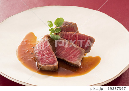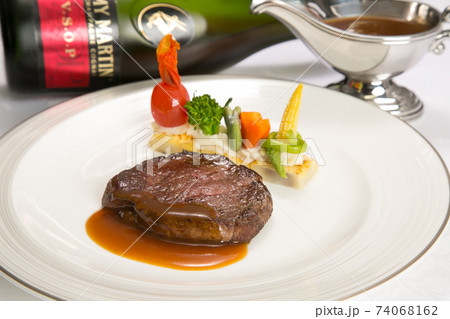 フレンチコースのメインビーフステーキ おしゃれな盛り付けの素材画像
