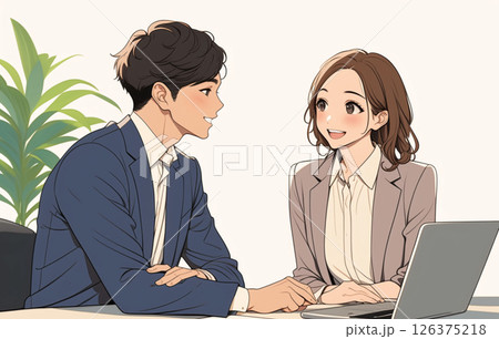 打ち合わせするビジネスパーソン男女_シンプルイラスト1