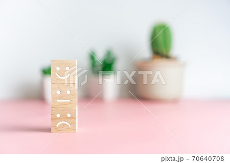 emotion faces on wooden doll for satisfaction survey
